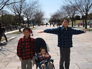 Bapak dan anak anaknya menikmati hangatnya sinar matahari dibawah pohon sakura yang masih ramai dengan bunga sakura yang berwarna pink.Pohon sakura yang berjejer disepanjang jalan taman ini cukup menghibur hati yang telah kehilangan rangsel beserta isinya.Untung ada beberapa jenis makanan halal yang bisa dibeli di kombini didepan tadi.Padahal rencananya kita mau makan bekal dibawah rindangnya sakura.tapi apa mau dikata manusia hanya bisa merencanakan tetapi Tuhan jugalah yang maha menentukan....