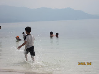 Karena hari telah senja membuat air laut mulai menyurut ketengan.Kesempatan ini akan membuat kita bisa bermain hingga ketengah.Hal yang tak mungkin dilakukan bila pagi tadi.